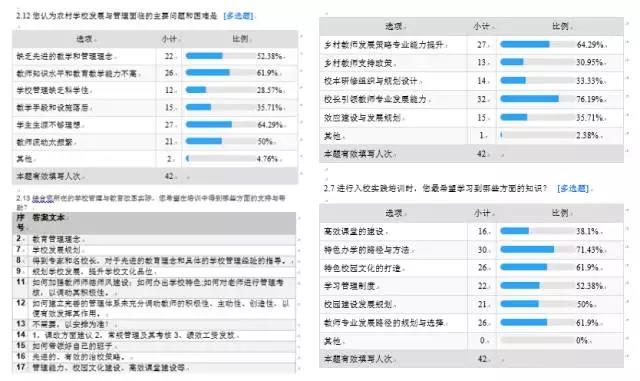 校長(zhǎng)們尚未來(lái)得及感受北京的寒意,一份訓(xùn)前調(diào)查問(wèn)卷就已通過(guò)群呈現(xiàn)在他們面前。問(wèn)卷中的22個(gè)問(wèn)題,覆蓋了參訓(xùn)需求的方方面面。而統(tǒng)計(jì)后的調(diào)查數(shù)據(jù),也被培訓(xùn)團(tuán)隊(duì)迅速地發(fā)給了每一位授課專(zhuān)家。專(zhuān)家們則通過(guò)數(shù)據(jù),更精確地調(diào)整課程內(nèi)容和講授方式。