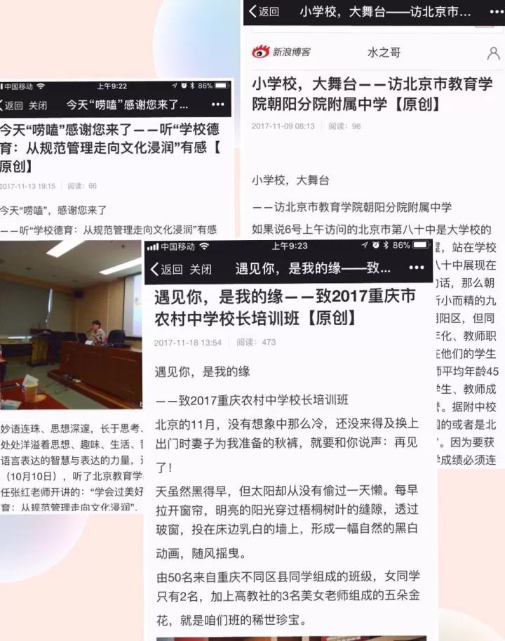 在同為鄉(xiāng)村學(xué)校的十五中南口分校,鄭校長(zhǎng)以“名校引領(lǐng)發(fā)展,改變促進(jìn)提升”為主題,從學(xué)校整體情況、辦學(xué)思想和文化特色、兩支隊(duì)伍建設(shè)及辦學(xué)特色等方面進(jìn)行了詳細(xì)介紹,并結(jié)合自身管理經(jīng)驗(yàn),和參訓(xùn)校長(zhǎng)們進(jìn)行了探討。還和校長(zhǎng)們就學(xué)校管理、獎(jiǎng)勵(lì)機(jī)制落實(shí)、學(xué)校特色課程開(kāi)展等方面問(wèn)題進(jìn)行了深入交流。為什么我們總在不斷尋求,因?yàn)槲覀儛?ài)的深沉;為什么我們總是精神抖擻,因?yàn)槲覀儛?ài)的深沉。愛(ài)這個(gè)國(guó)家,愛(ài)付出了半輩子的教育事業(yè),愛(ài)學(xué)校里的每一個(gè)孩子,他們善良,他們渴望,他們需要我們?yōu)橹畩^斗。夢(mèng)想是對(duì)自己的期許,夢(mèng)想是對(duì)應(yīng)然之事的承諾。