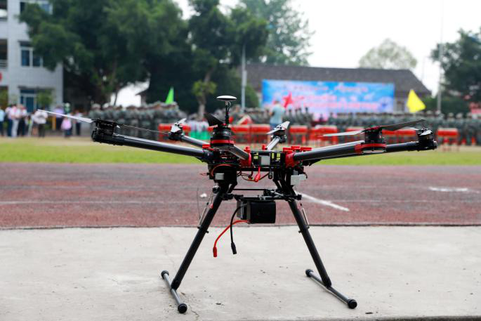 (無人機(jī)調(diào)試好后,等待著起飛)