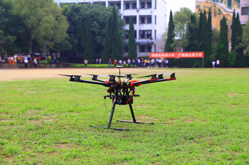 在靜態(tài)部分,工作人員親自為同學(xué)們展示了大疆S1000+實(shí)訓(xùn)無人機(jī)的組裝、調(diào)試過程,并進(jìn)行了結(jié)構(gòu)介紹;接著是對(duì)零創(chuàng)GY-1植保無人機(jī)和大疆精靈航拍無人機(jī)做了靜態(tài)介紹;最后是對(duì)無人機(jī)行業(yè)的應(yīng)用領(lǐng)域和行業(yè)做了簡(jiǎn)單介紹。