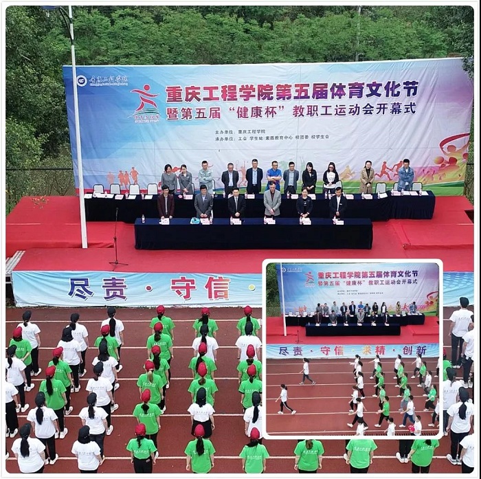 2019年4月11日上午,重慶工程學院操場內(nèi)彩旗招展,鼓樂喧天,花團錦簇,人頭攢動。6000余名師生迎著春日的朝陽,踏著春天的節(jié)拍,迎來了學校第五界體育文化節(jié)暨第五屆“健康杯”教職工運動會,現(xiàn)場氣氛熱烈!多姿多彩!