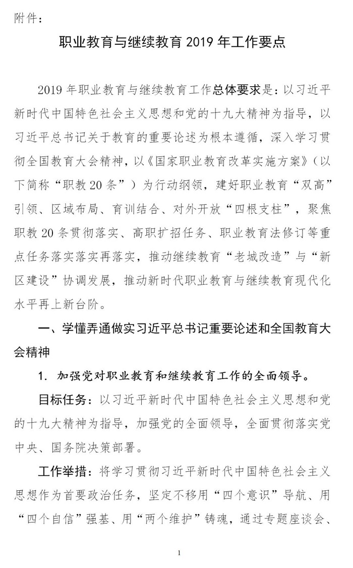 經部領導同意,現將《職業教育與繼續教育2019年工作要點》印發給你們,供工作中參考。