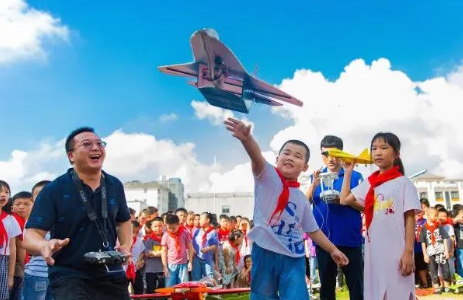 9月1日,江蘇如皋磨頭小學學生參與航模表演。徐慧 攝