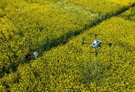 重慶南川區(qū)的油菜田上空一架無人機(jī)在駕駛員的操控下,忙碌地進(jìn)行著飛防作業(yè)。無人機(jī)騰空而起,在油菜田上空按照預(yù)定路線勻速飛行,精準(zhǔn)進(jìn)行飛防作業(yè)。